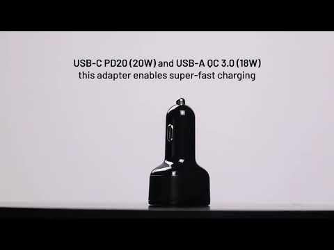 Adaptér do zapalovače cigaret v autě pro superrychlé nabíjení, ideální pro cesty autem (kabel se prodává samostatně).Materiál: recyklovaný ABS (100 % rABS)Výstup: USB-C PD20 (20 W) a USB-A QC 3'0 (18 W)Balení: dárková krabička z kraftového papíru 71 x 43 x 27 mm | Box: 45 x 75 x 30 mm