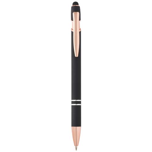 Kuličkové pero Nanna s povrchovou úpravou z růžového zlata má tělo vyrobené z recyklovaného hliníku a dotykový stylus vyrobený ze silikonu. Snižuje také množství odpadu na skládkách a pomáhá šetřit přírodní zdroje s cílem snížit emise skleníkových plynů. Barva inkoustu: Modrá. Délka psaní: 800 metrů. Rozměr hrotu: 1,0 mm.